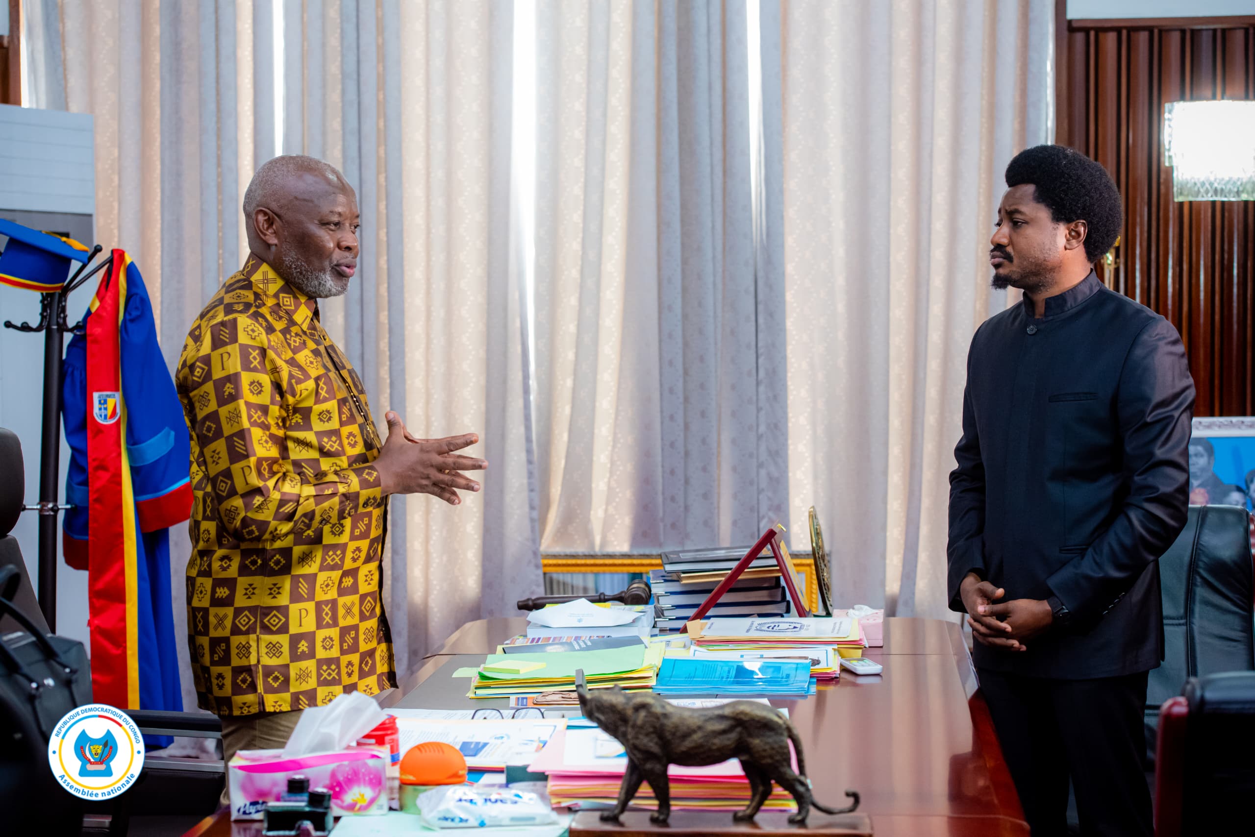 Le président de l’Assemblée nationale, Vital Kamerhe a reçu, jeudi 15 août, le ministre d’État en charge de la Justice et garde des sceaux, Constant Mutamba, venu lui déposer, pour rappel, quelques textes des lois importants en attente de promulgation. Il s’ est agi notamment des